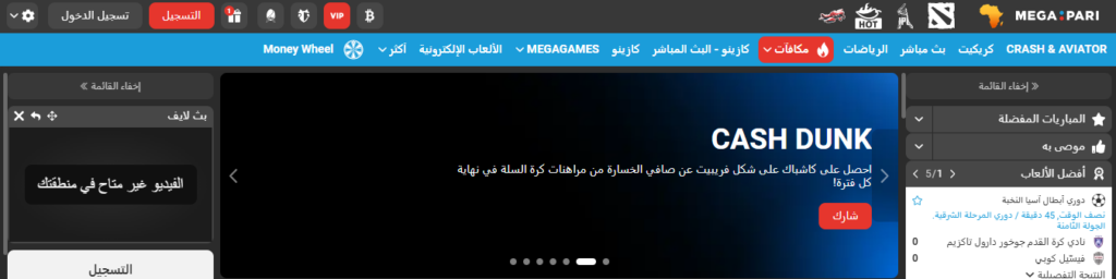 تدعم المنصة عددًا كبيرًا من اللغات والعملات، من بينها عملات عربية، إضافة إلى العملات الرقمية، ما يسهّل عملية الإيداع والسحب دون الحاجة إلى تحويلات معقدة. كما يتميز موقع Megapari بقسم مراهنات رياضية اون لاين غني بالأسواق الجديدة، وهو أمر يبحث عنه كثير من المستخدمين العرب الذين يفضّلون استخدام موقع واحد بدل التنقل بين منصات مختلفة.