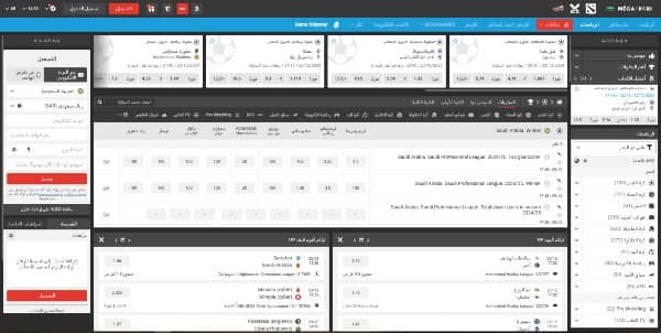 - ينقر اللاعب على الحدث ليجد الرهانات المتنوعة التي يمكن أن يضعها اللاعب على المباراة وبجانب كل رهان من هذه الرهانات قيمة الربح المتوقعة إذا صح توقّع اللاعب.
